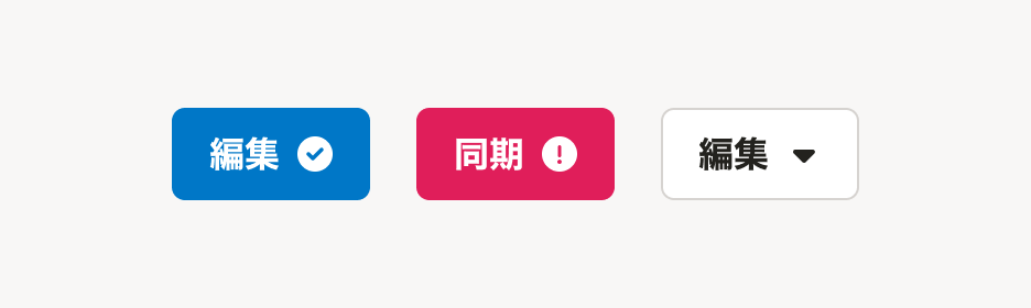 チェックマーク付きの編集ボタン、エクスクラメーションのついた同期ボタン、下向き三角のついた編集ボタン