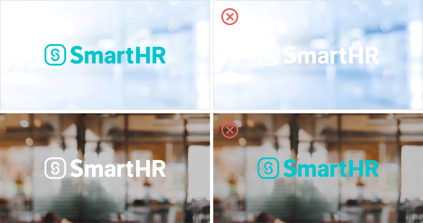 背景に色や画像がある場合は、視認性を考慮して、以下を参考にSmartHR Blue、Whiteのいずれかを使用してください。