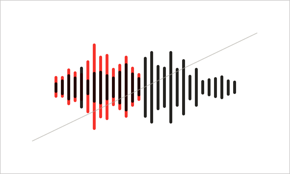 モーションロゴの音声に他の音声を重ねた音声波形の図に、斜線が引かれている