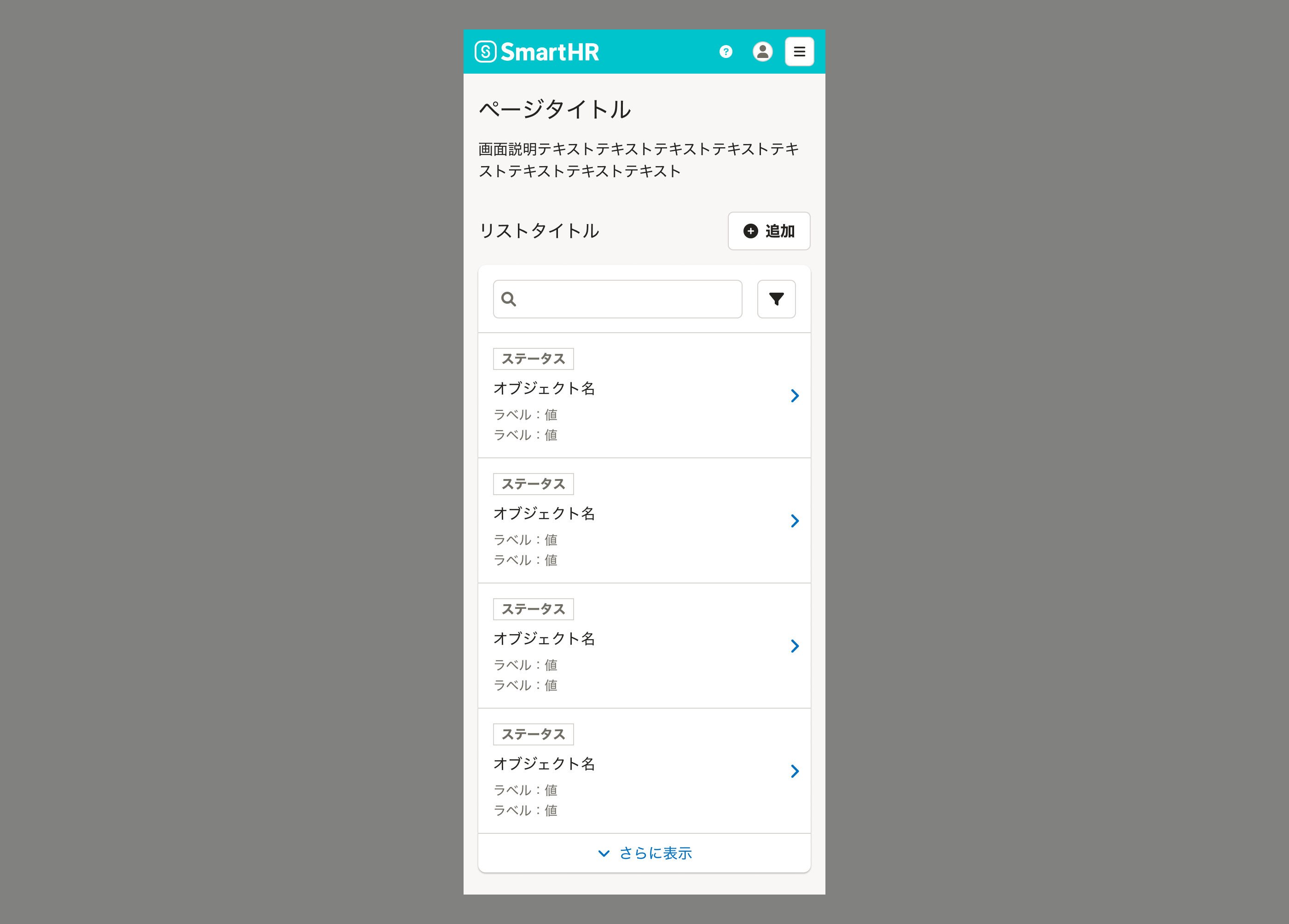 オブジェクトを一覧表示するページで利用します。狭い領域(主にモバイル)でオブジェクトを一覧表示する場合に有効です。