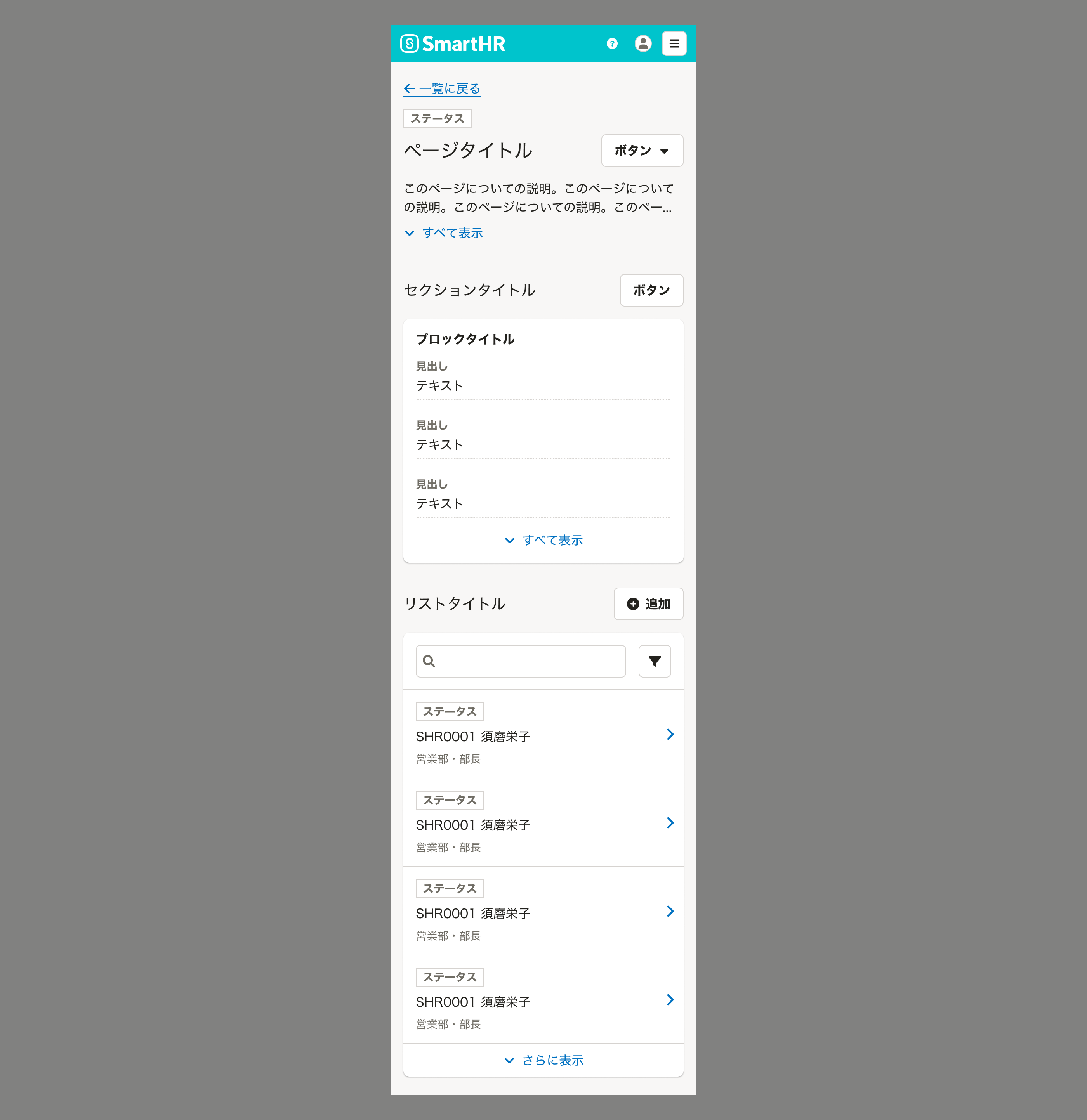 SmartHR全体で一貫性のあるページレイアウトを提供することで、ユーザーはレイアウトを都度学習することなく経験に基づいてUIを予測しながらアプリケーションを利用できます。